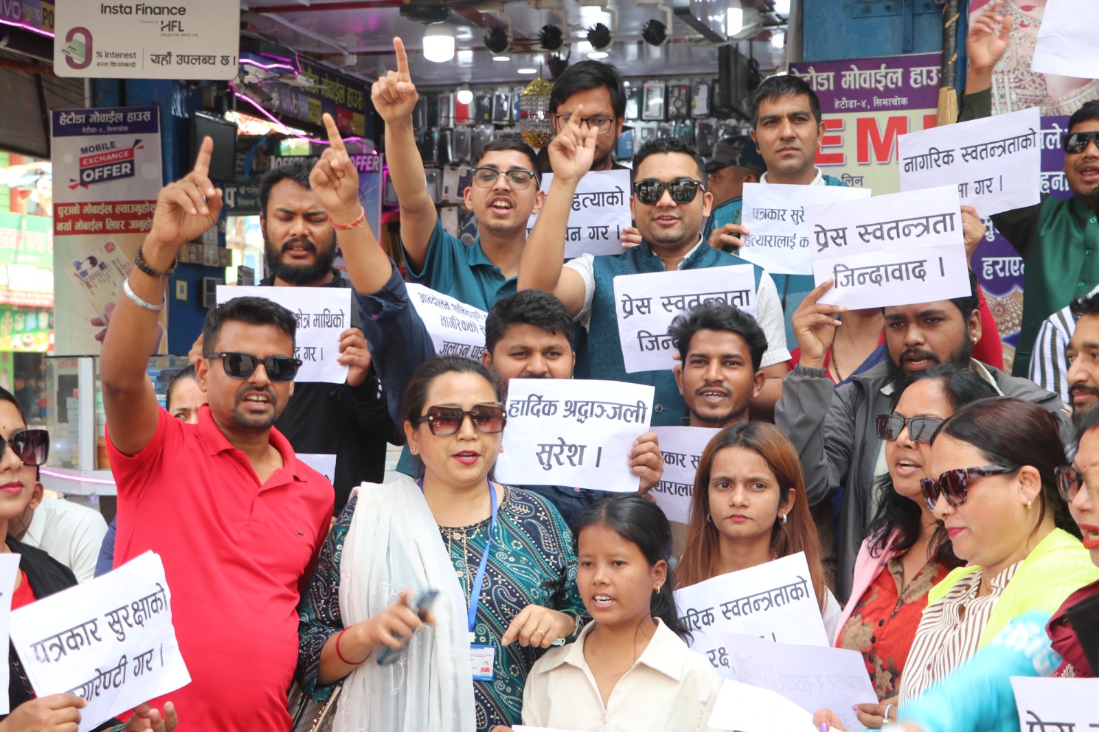 विरोधसभामा पुगेका प्रत्येक पत्रकार साथीहरुले प्लेकार्डमा लेखेका छन् “प्रेस स्वतन्त्रता जिन्दाबाद,पत्रकार सुरक्षाको ग्यारेन्टी गर हार्दिक श्रद्धाञ्जली सुरेश” जस्ता प्लेकार्डहरू बोकेर सिमाचोकमा पुगेर विरोध सभा हेटौंडाका पत्रकारहरुले गरेका थिए।