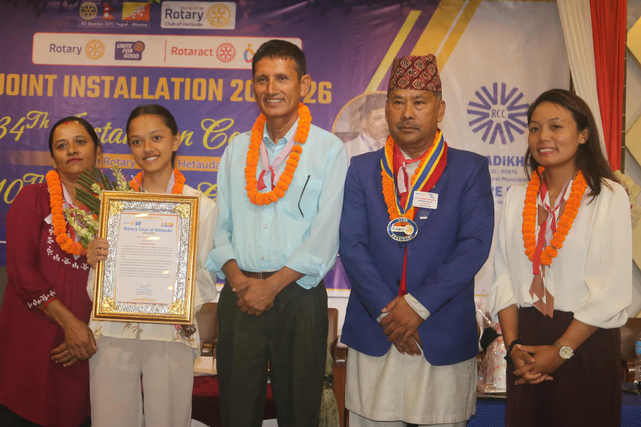 कार्यक्रममा रोटरी ३२९२ का डिष्ट्रिक गभर्नर नोमिनी (डिजीएन) डा. ईश्वरी प्रसाद ढकालले सपथ ग्रहणसँगै रोटरी क्लब अफ हेटौंडाको वर्ष २०२५/२६ का अध्यक्ष प्रमेश प्रधानलाई चार्टर प्रमाणपत्र, पिन, कोलार र ज्यावल हस्तान्तरण गरिएको थियो । साथै, अध्यक्ष प्रधानले बोर्ड समितिका पदाधिकारीलाई सपथ ग्रहण गराएका थिए ।