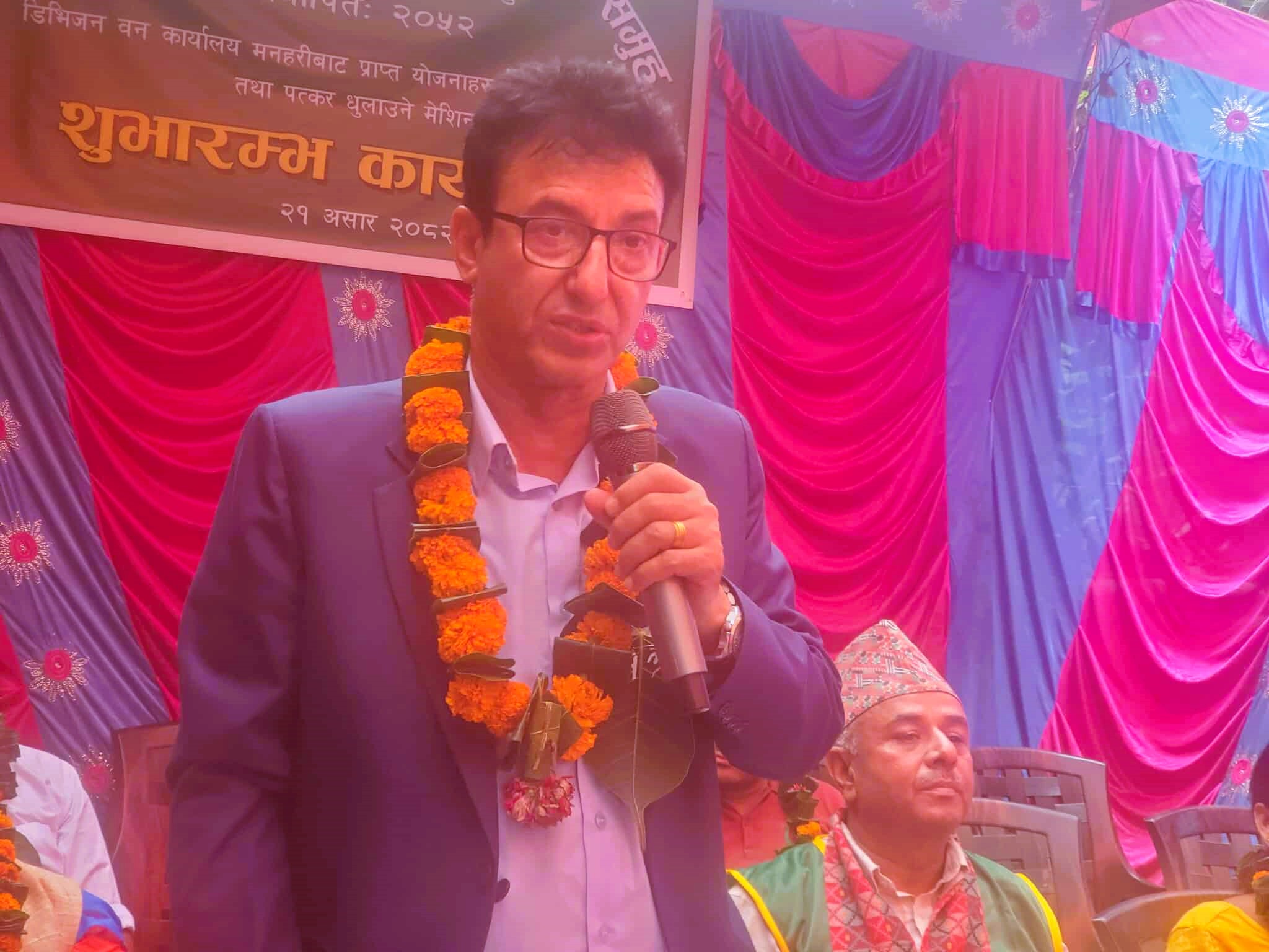 बन मन्त्रीले गरे पत्कर धुलो बनाउने मेसिनको उद्धाटन