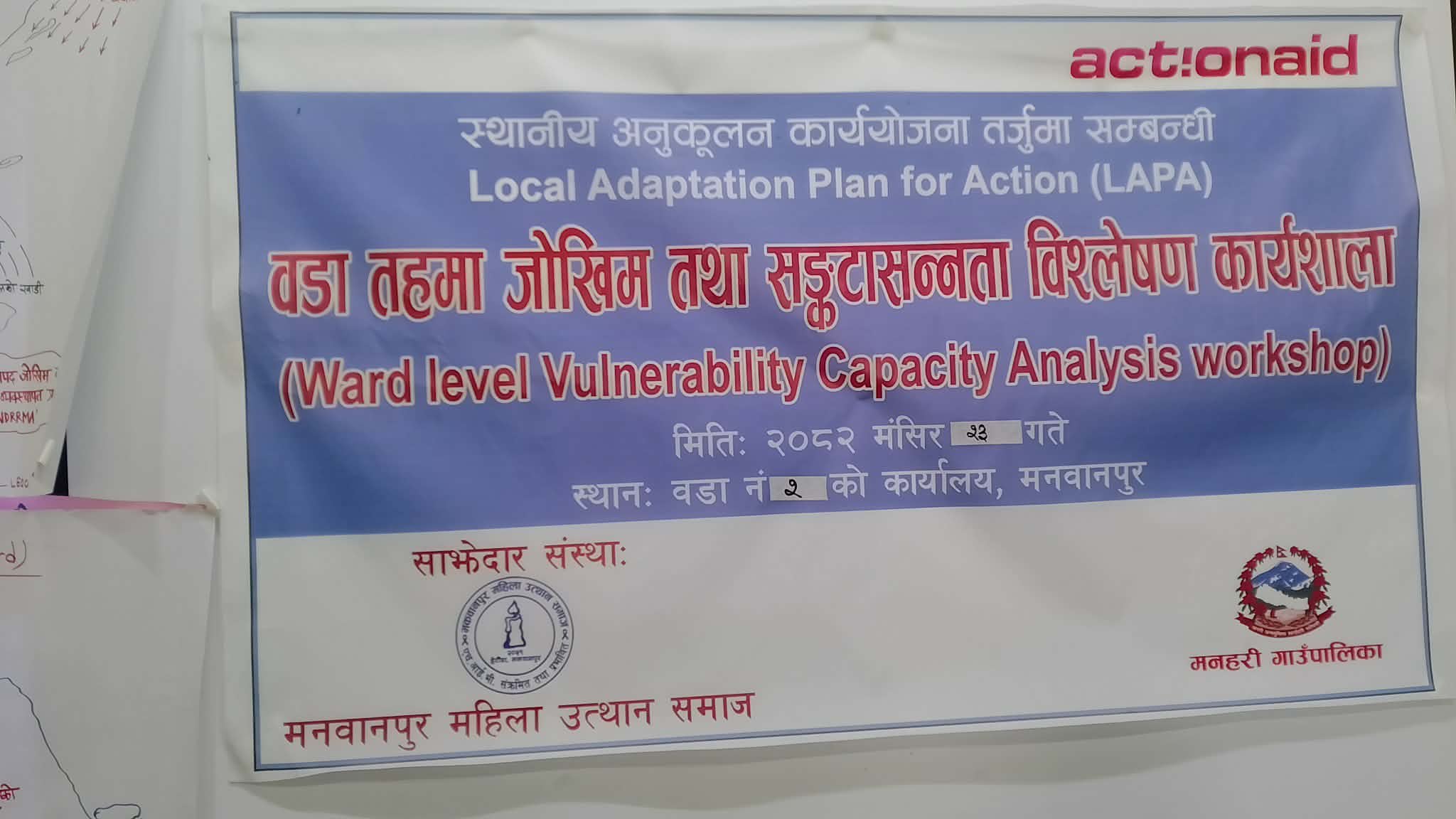 मनहरी, मंसिर २३ गते । मनहरी गाउँपालिका वडा नम्बर २ मा मनहरी गाउँपालिकाको आयोजना तथा मकवानपुर महिला उत्थान समाजको साझेदारीमा स्थानीय अनुकुलन योजना तर्जुमा सम्बन्धि जोखिम तथा संकटासन्नता विश्लेषण कार्यशाला कार्यक्रम सम्पन्न भएको छ ।