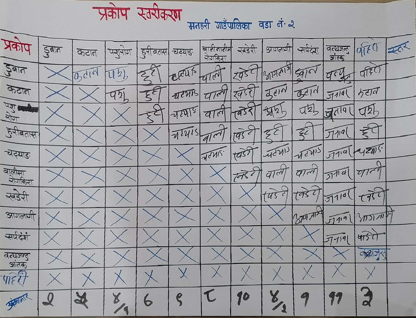 छलफलको क्रममा वडाभित्र सबैभन्दा बढी वन्यजन्तु आतंक त्यसपछि खडेरी, चट्याङ र अन्नबालीरोगको कारण संकट तथा विपद आइ पर्ने गरेको तथ्यांक निस्किएको छ ।