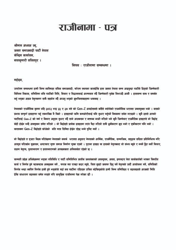 संघीय समाजवादी फोरम स्थापनाकालदेखि निरन्तर पार्टीमा सक्रिय रहँदै आएका उनीहरूले जसपा नेपालको केन्द्रीय कार्यालय बालकुमारी, ललितपुरमा राजिनामा पत्र बुझाउँदै आजको मितिदेखि साधारण सदस्य समेत नरहने घोषणा गरेका हुन्।