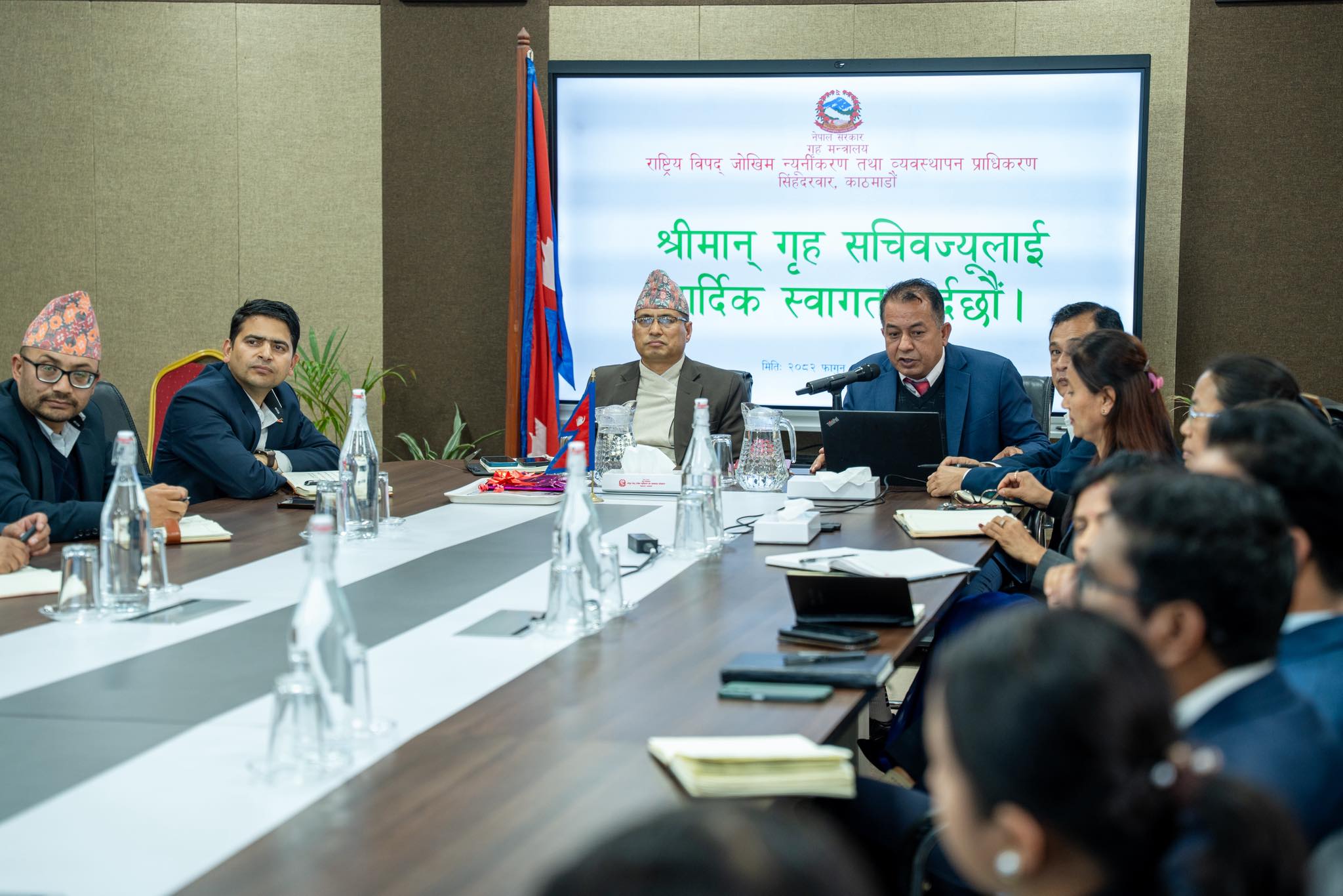 राष्ट्रिय विपद् जोखिम न्यूनीकरण तथा व्यवस्थापन प्राधिकरणमा अवलोकन तथा निरीक्षण भ्रमणका क्रममा सचिव श्रेष्ठले विपद् व्यवस्थापनमा स्थानीय तहको भूमिका महत्वपूर्ण हुने भन्दै त्यसका लागि आवश्यक स्रोत–साधनको व्यवस्था तथा प्राविधिक सहयोग भने प्रदेश र संघ सरकारले गर्नुपर्ने धारणा व्यक्त गरे।