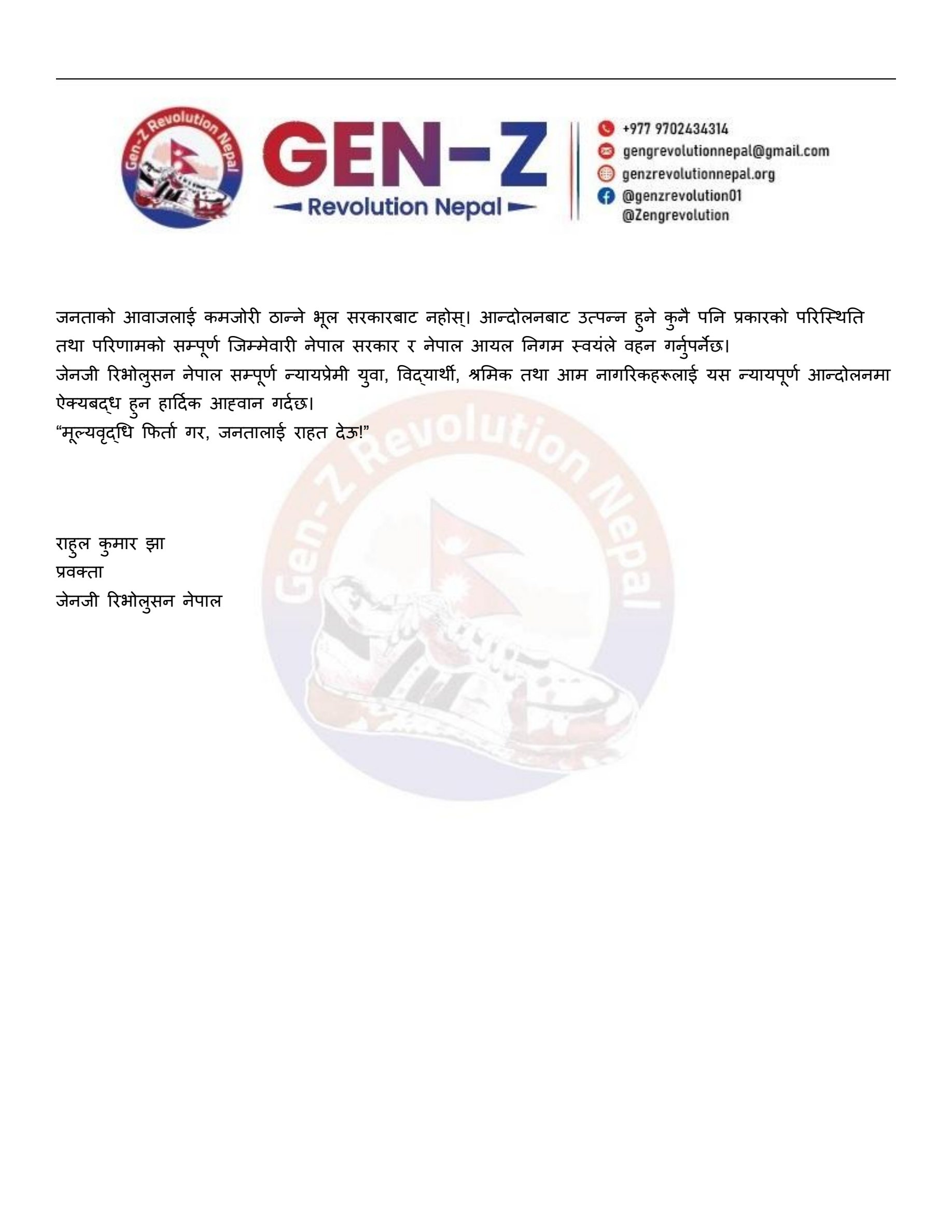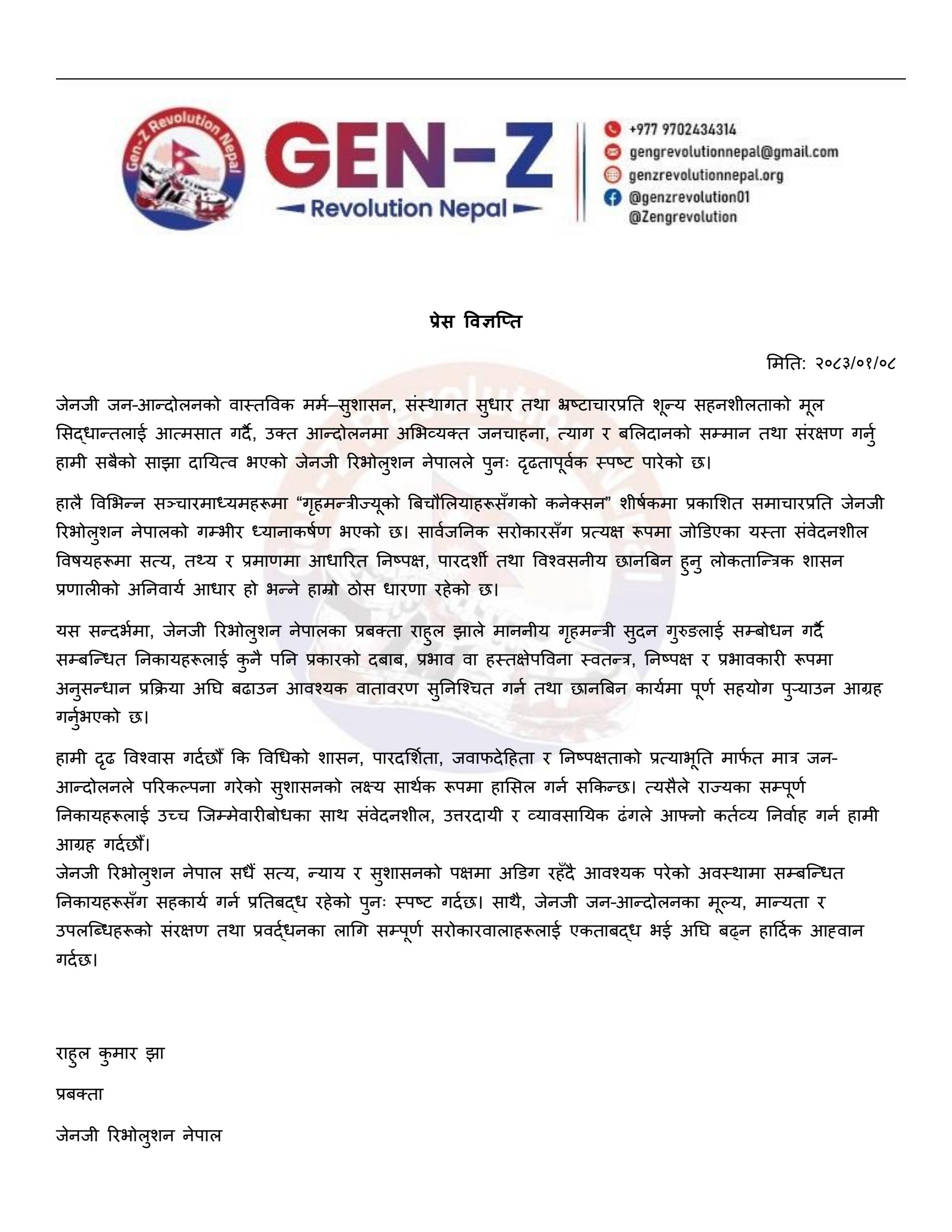जेन जी रेभोलुशन नेपालको विज्ञप्ति यस्तो छ हेर्नुहोस् ।