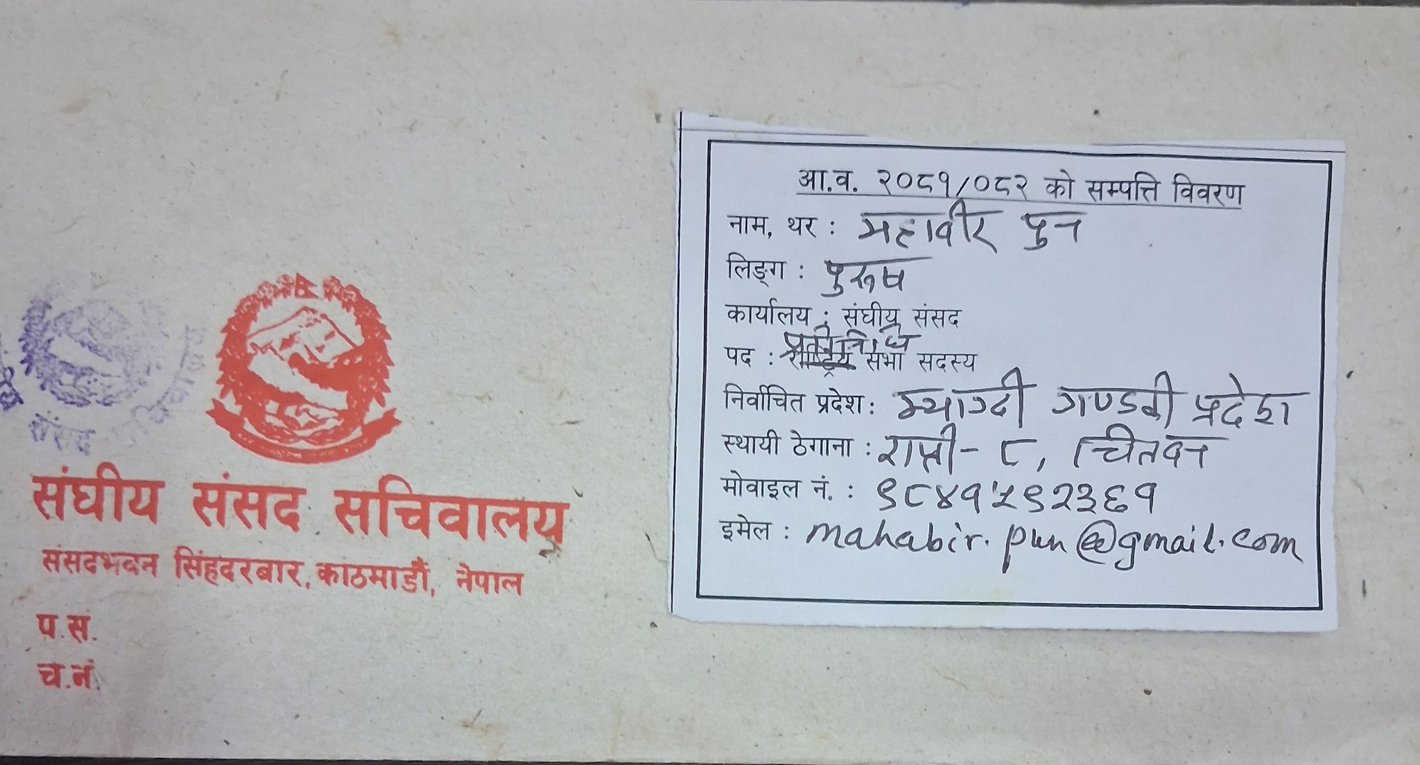 सम्पत्ति विवरण सार्वजनिक गर्दै महावीर पुनको चुनौती—‘शंका छ भने छानबिन गर्नुहोस्’